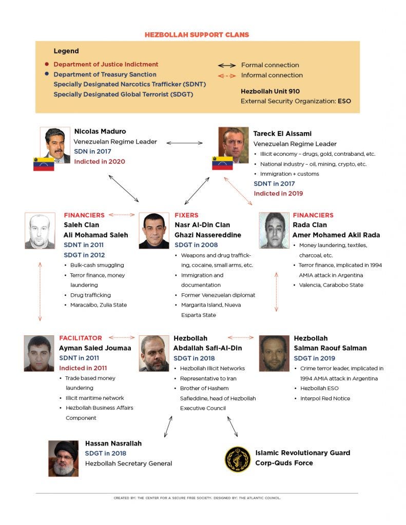 Although those indictments cited the Iranian connection, it was the prosecution of former Venezuelan parliamentarian Adel El Zabayar as a member of Cartel de Los Soles that cited the Hezbollah connection in particular. Among their allegations, prosecutors said El Zabayar obtained anti-tank rocket launchers from the Middle East for the FARC as partial payment for cocaine and recruited terrorists from Hezbollah and Hamas “for the purpose of helping to plan and organize attacks against the United States.”